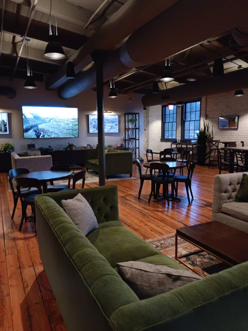 The current distillery is in a new location in the East Bottoms neighborhood, but what they've done with the building is impressive. It appears to be a warehouse sized building that gave them lots of room to work with. The distillery is visible right when you walk in with a merchandise store and a large metal slide visible to the left. There is an area dedicated to the history of the Reiger name with lots of artifacts dating back to the time of the original distillery to the right. Upstairs is a huge restaurant area with a large bar overlooking the distillery below with posh seating and even bar games available. You can hop on the slide to get back down the main level if you want. I was told it was mandatory, so I obliged. We had our event outside in a covered area, but there was also a large courtyard with plenty of seating and would be perfect on a summer's night or for lunch on the weekend. The first time I walked through, I completely missed the stairway going down. The next time, I followed another group down only to discover a speakeasy called The Hey Hey Club. It was super cool down there, with very dark lighting, lots of over-sized posh seating and a great bar. This wasn't part of our event, so I was a bit of a usurper as I checked it out, but my first thought was, next time in KC, I'm coming back here for sure. It's named after a famous and historical night club in Kansas City that no longer exists, but was home to some of the best jazz the city had seen. Live music is played here on Thursdays. The sheer amount of space they have is great and they do a pretty good job of utilizing it. Everything is done in high-end materials and it was clean and inviting.